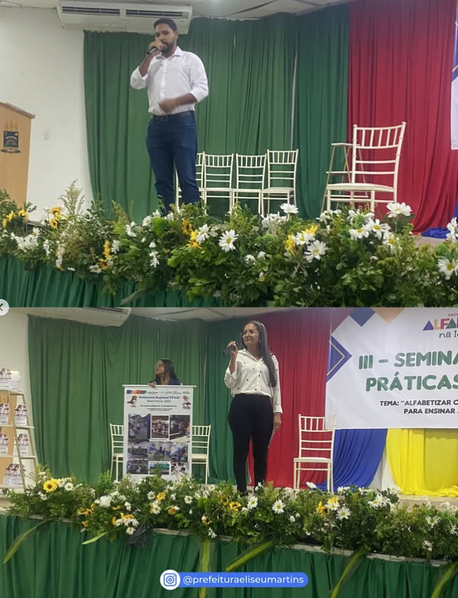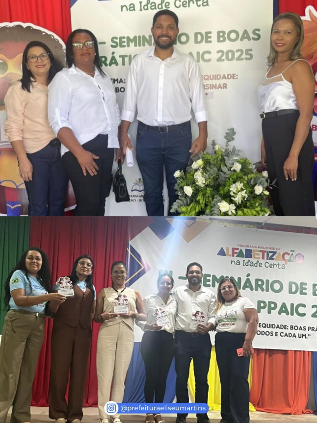 Com o tema “Alfabetizar com equidade: boas práticas para alfabetizar a todos e cada um”, a Secretaria Municipal de Educação de Eliseu Martins marcou presença no III Seminário Regional de Boas Práticas do PPAIC 2025, realizado no dia 26 de setembro, no campus da Universidade Federal do Piauí (UFPI), em Bom Jesus, reunindo educadores da 14ª Gerência Regional de Educação.