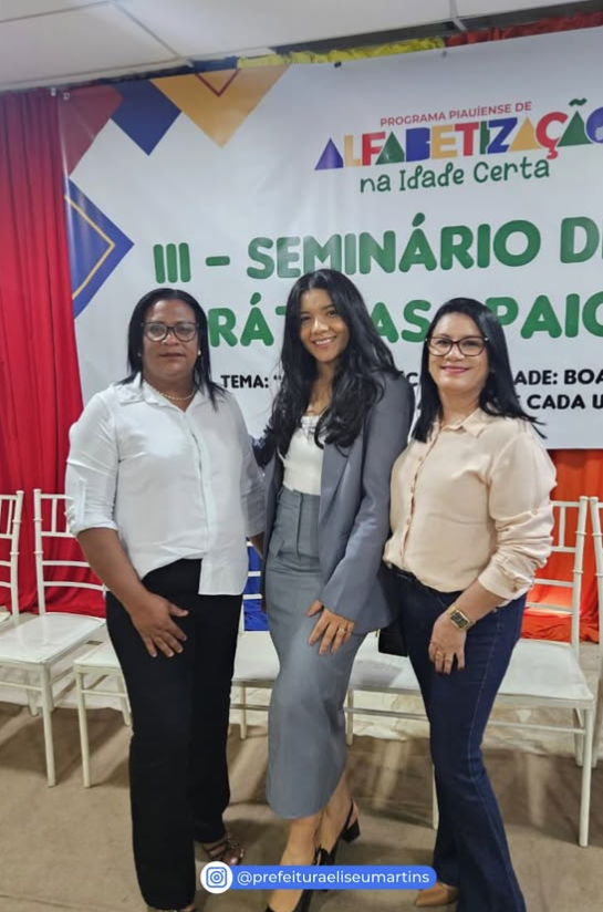 Com o tema “Alfabetizar com equidade: boas práticas para alfabetizar a todos e cada um”, a Secretaria Municipal de Educação de Eliseu Martins marcou presença no III Seminário Regional de Boas Práticas do PPAIC 2025, realizado no dia 26 de setembro, no campus da Universidade Federal do Piauí (UFPI), em Bom Jesus, reunindo educadores da 14ª Gerência Regional de Educação.